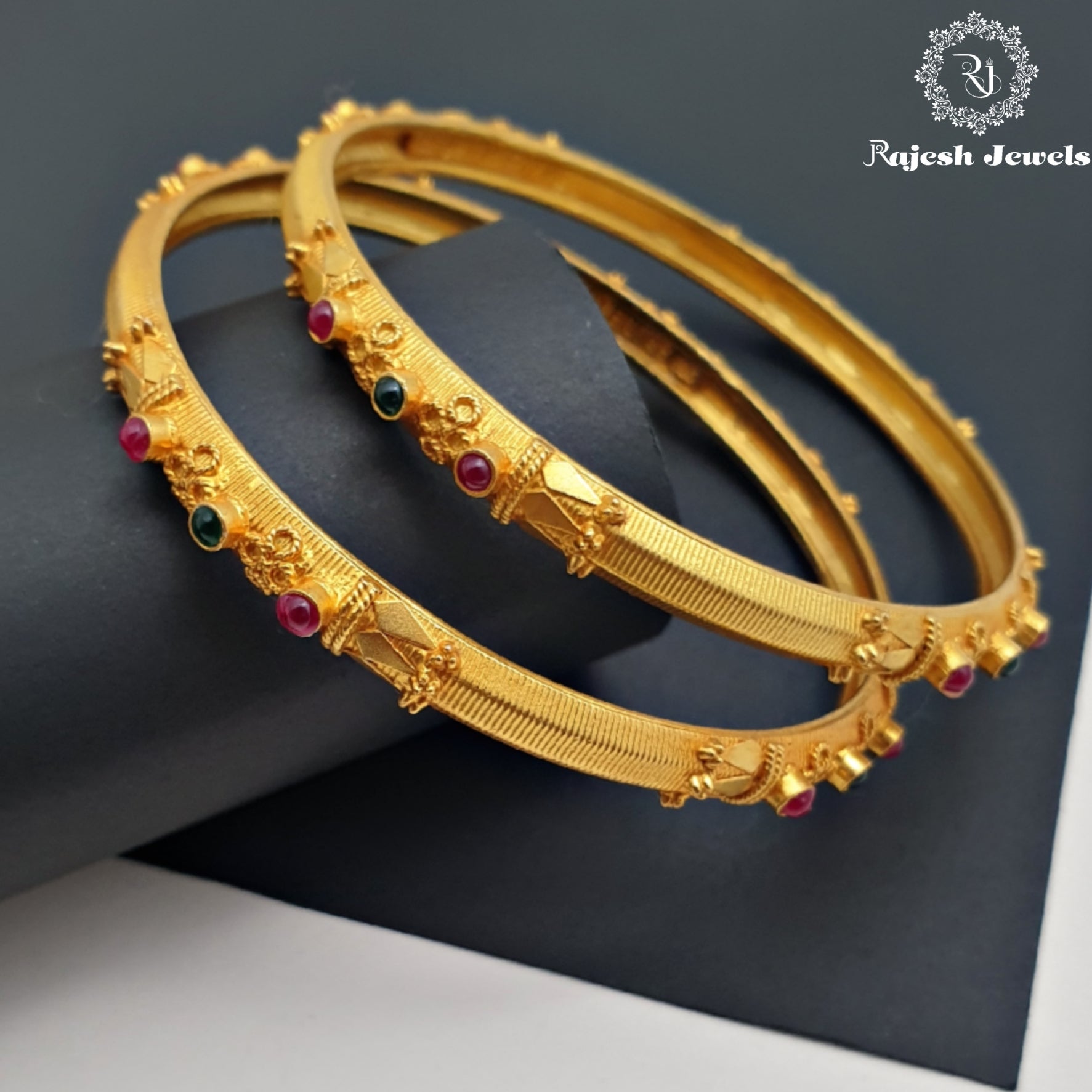 92.5 Pure Silver 22K Gold Plated Handmade Bangles Studded With Semi Precious Stones
