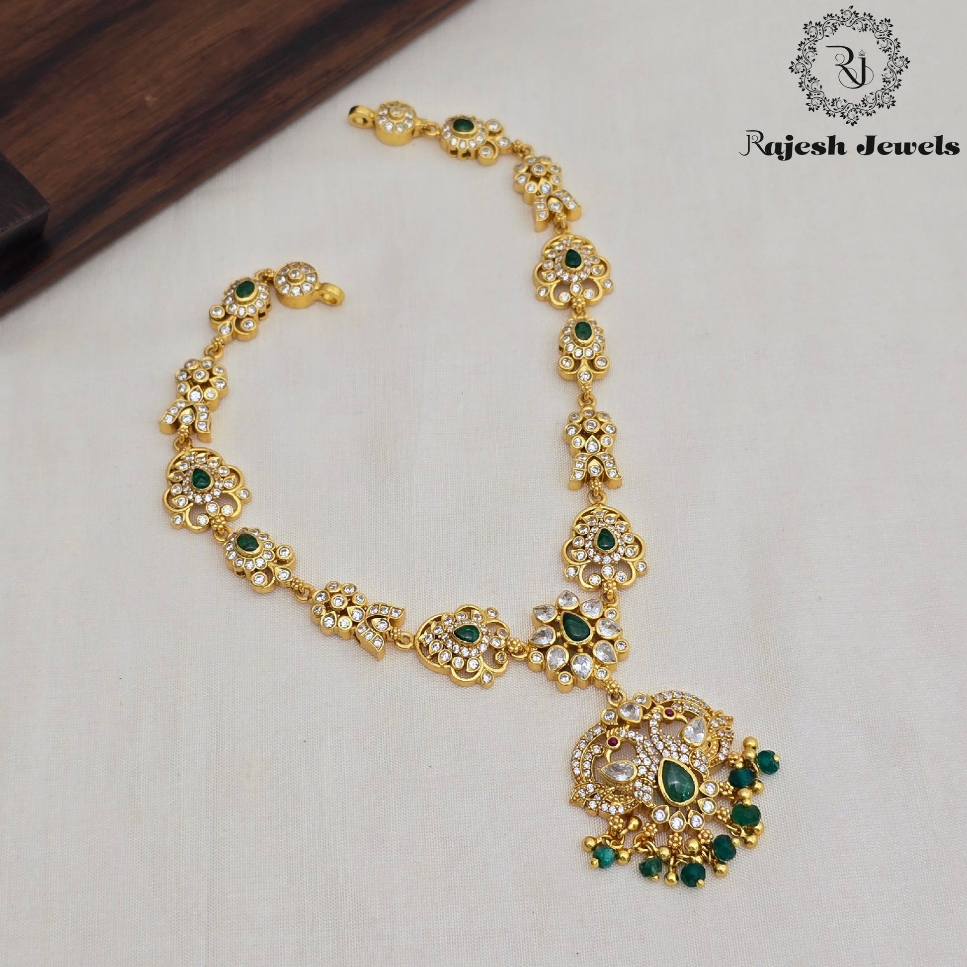 92.5 Pure Silver 22K Gold Plated Necklace Studded With Semi Precious Stone