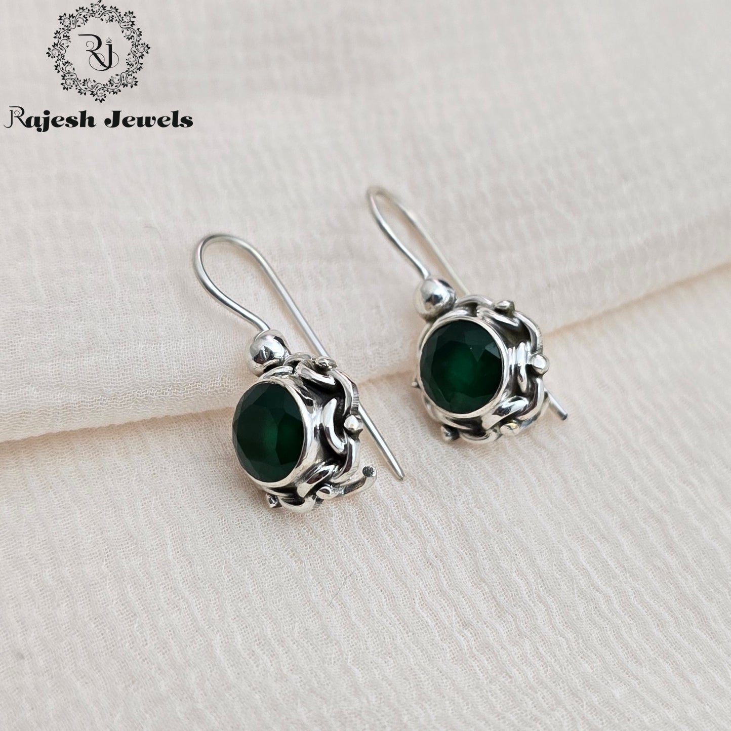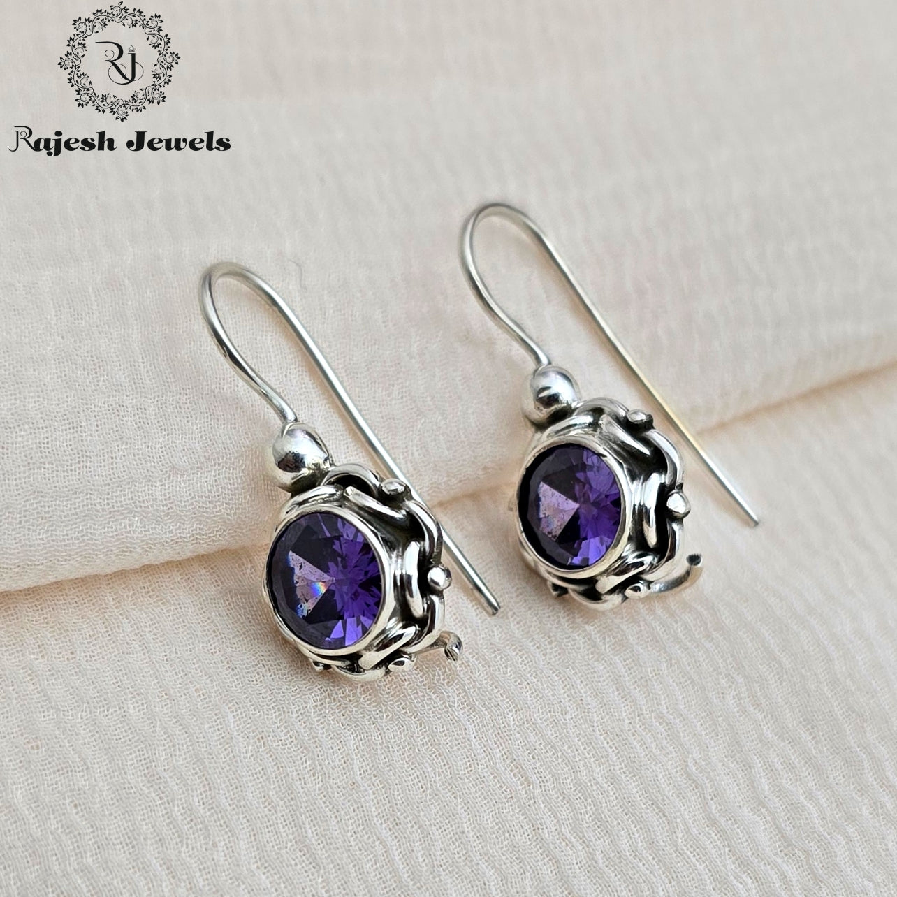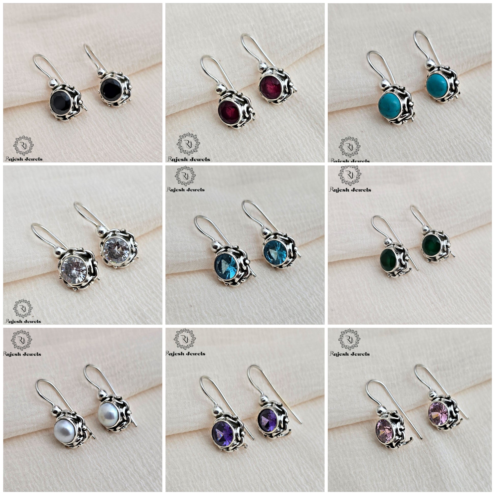 92.5 Pure Silver Oxidised Antique Finish Handmade Earrings Studded With Semi Precious Stones