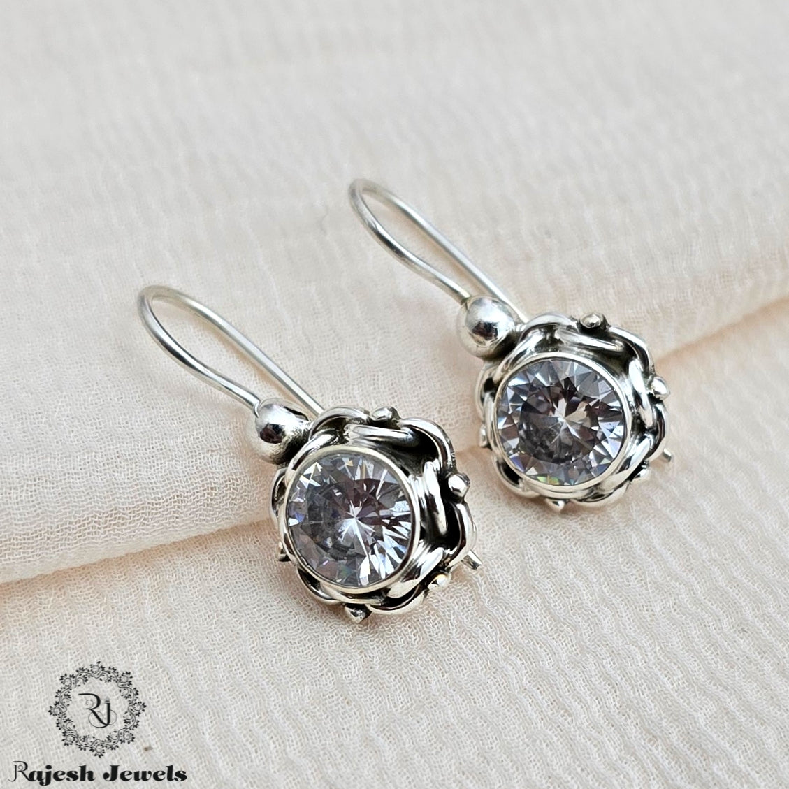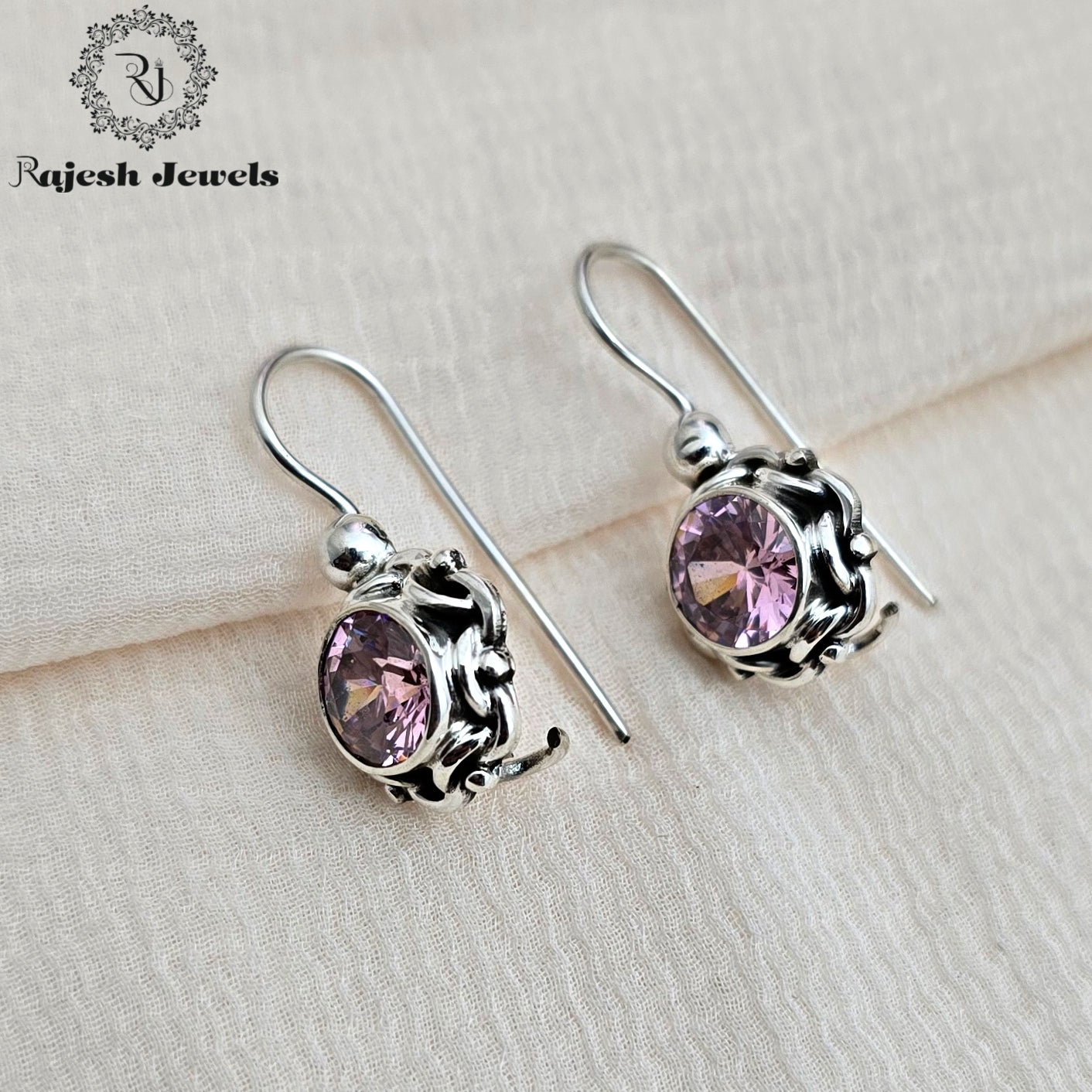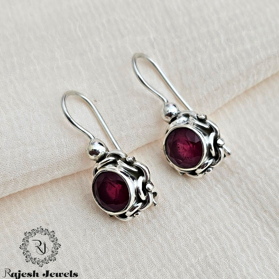 92.5 Pure Silver Oxidised Antique Finish Handmade Earrings Studded With Semi Precious Stones